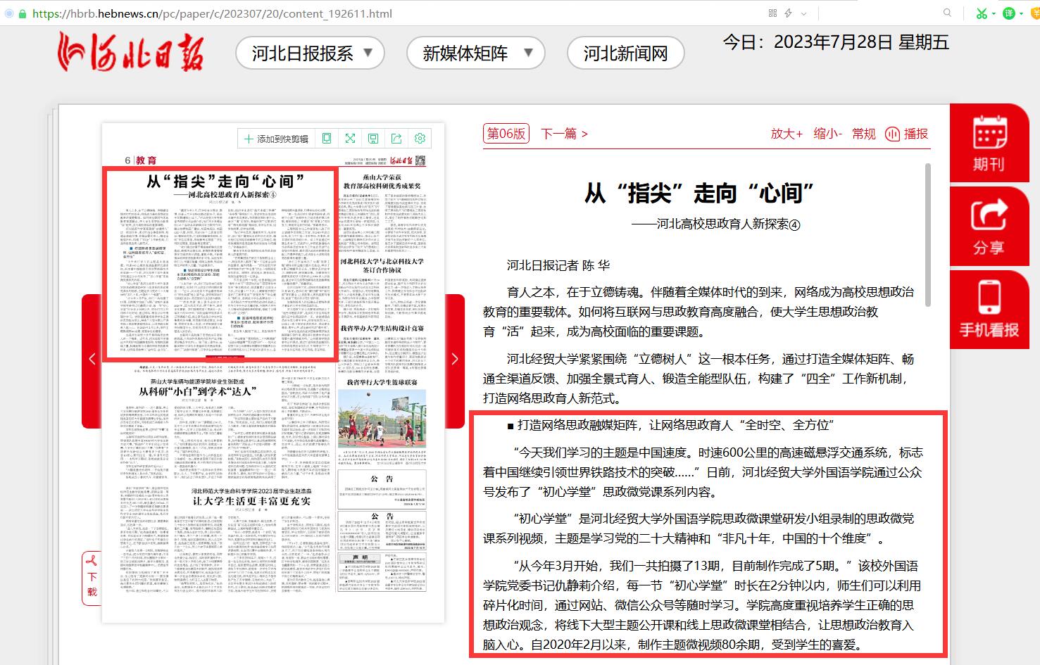 从“指尖”走向“心间”河北高校思政育人新探索——河北日报报道 tyc33455cc太阳集团初心学堂思政微党课