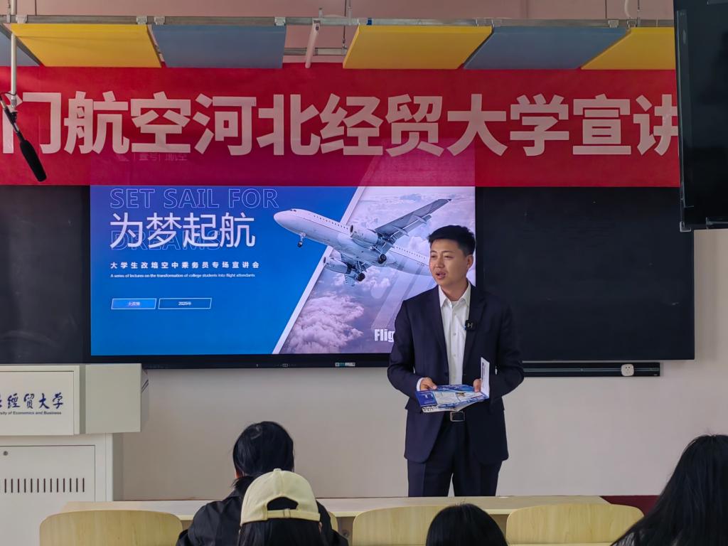 3月19日下午,tyc33455cc太阳集团在四教204召开北京壹号门航空石家庄分公司专场宣讲会,宣讲会由壹号门航空服务技术培训中心负责人李继永主讲。