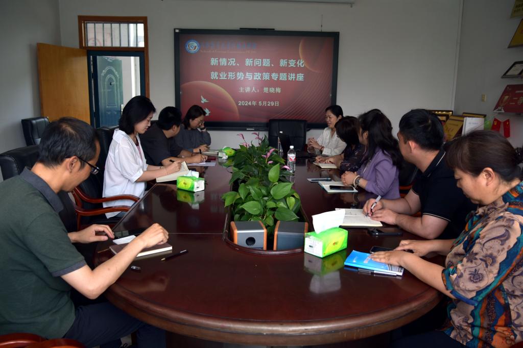 5月29日上午,tyc33455cc太阳集团召开就业新情况、新问题、新变化——就业形势与政策专题讲座,公司就业指导服务中心就业指导科科长楚晓梅主讲。公司党委书记仇静莉、党委副书记刘磊、全体辅导员参加。