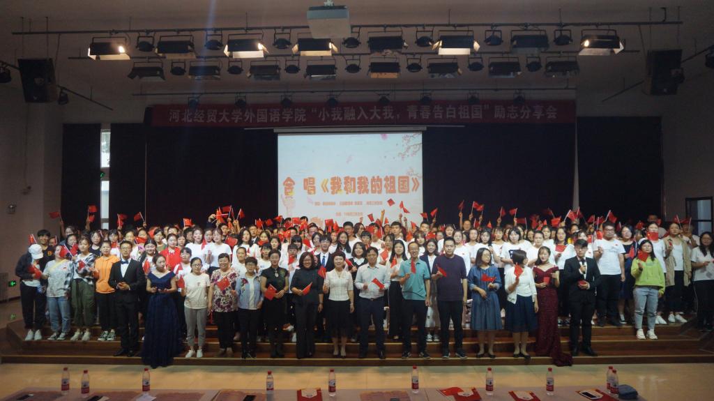 活动在庄严雄壮的国歌中拉开序幕,分为上下两部分,在“现身说法互学互鉴”环节,优秀员工与老生代表分享了自己的人生经历、奋斗历程、遇到的困难与挫折、取得的成绩与荣誉。员工们的励志分享对学弟学妹们触动颇深,潸然泪下。在“青春担当深情告白”环节,手语操《国家》,彰显爱国精神,展现当代新青年赤子情怀;朗诵《等待》深情讴歌“两弹元勋”邓稼先的热血奉献与妻子的无悔等待,感人肺腑,催人泪下;诗朗诵《青春中国》慷慨激昂,表达出青年人立志报效祖国的坚定信念;大合唱《我和我的祖国》气势恢宏,全场师生舞动红旗,引吭高歌,尽展青春的蓬勃朝气与时代的昂扬风貌,在高昂的歌声中本次活动画上圆满句号。