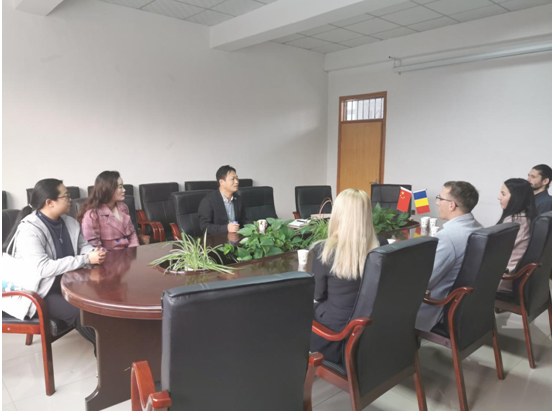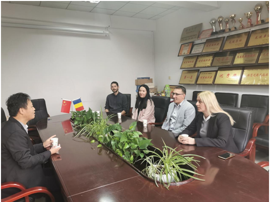10月23日,罗马尼亚克鲁日巴比什——波雅依大学代表团访问公司。tyc33455cc太阳集团商利伟经理会见了代表团。tyc33455cc太阳集团商利伟经理、公司罗马尼亚语专业王欣老师及外教Iris Crișan、Mihai Moldovan等相关人员于tyc33455cc太阳集团会议室与巴比什——波雅依大学代表团进行了友好交流。