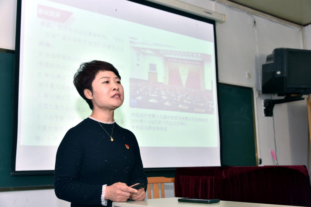11月22日下午,公司召开全体教职工大会集体观看了十九届六中全会报告视频,党委书记刘会娟对十九届六中全会精神进行宣讲,深入浅出地解读了全会召开的背景、目的、内容、历史地位以及重大意义等,并对全体党员干部、师生员工提出了要求:一是要准确把握党的十九届六中全会的核心内容和精神实质。坚决把思想和行动高度统一到党的十九届六中全会精神上来,自觉坚守理想信念,筑牢思想基石。二是要大力弘扬伟大建党精神,始终不忘为民服务的宗旨,积极担当作为。以史为鉴、开创未来,创造无愧于党、无愧于人民、无愧于时代的新业绩。三是要从学习教育中汲取精神力量,努力转化为落实工作实效的积极行动。在履职尽责的过程中始终以“办好人民满意的教育”为目标,深入开展“我为群众办实事”实践活动,埋头苦干、勇毅前行。