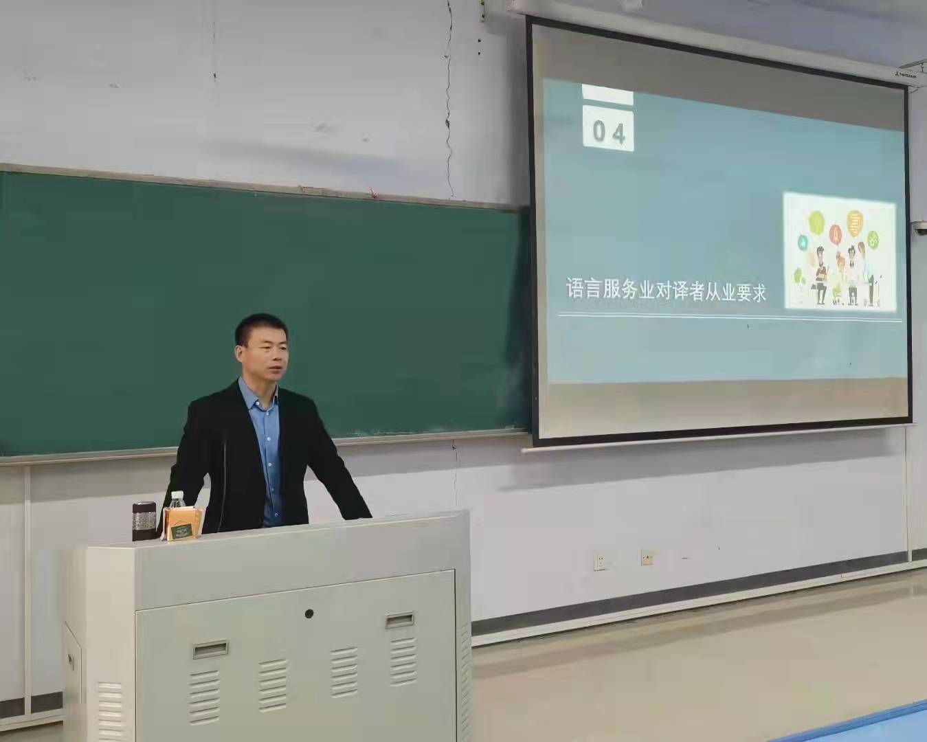 本次系列讲座主题为中国语言服务业发展趋势及MTI员工职业生涯规划,刘智宽老师为师生介绍了语言服务业的总体概况、全球市场需求和翻译领域的重大变化,着重分析了中国语言服务业发展趋势、MTI员工应对策略以及语言服务业对从业者要求。