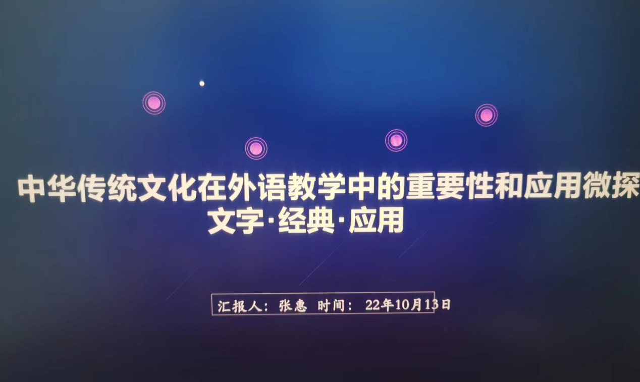 10月13日下午,tyc33455cc太阳集团本学期第2期教学沙龙活动在线上顺利开展。tyc33455cc太阳集团张惠老师作了“中国传统文化在外语教学中的重要性和应用微探”的交流分享。50余名教师参加了此次沙龙活动。