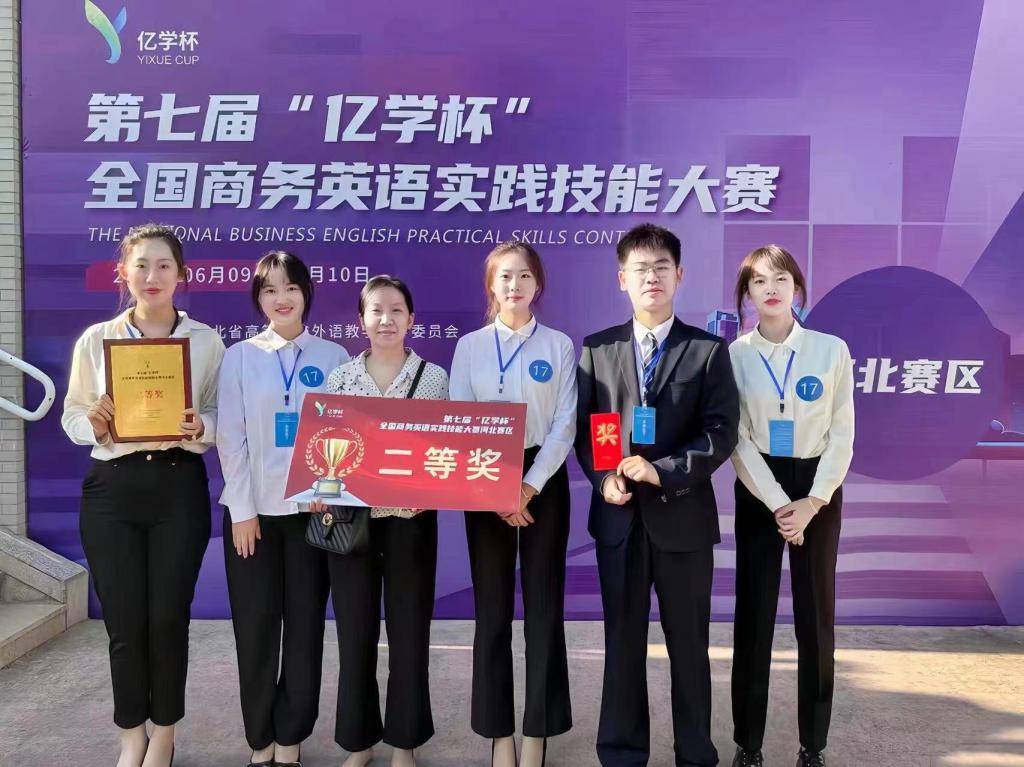 2023年6月9日-10日,第七届“亿学杯”全国商务英语实践技能大赛河北赛区比赛在保定公司圆满落幕,tyc33455cc太阳集团2021级商务英语专业王文婧、丁凯豪、宋雨轩、邱媛、刘芷伊五位同学荣获河北赛区二等奖。