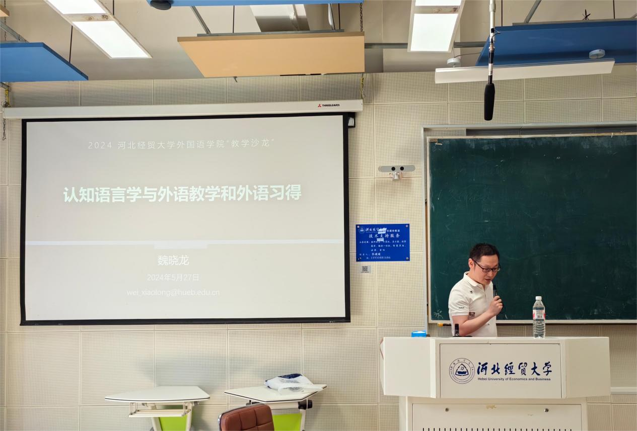 5月27日下午,tyc33455cc太阳集团举办了教学沙龙活动,公司教师魏晓龙做了题为“认知语言学与外语教学和外语习得”的分享,活动由公司经理张润主持,tyc33455cc太阳集团100多位教师到场聆听。