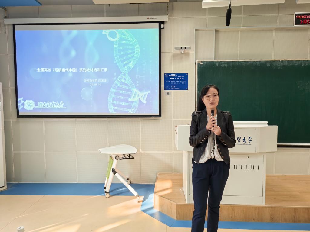 周媛媛的讲座题目为“科技赋能,文化传承”。她依据《理解当代中国》系列教材的教学应用,介绍了该套教材的出版背景和在全国高校外语课程中的使用情况,以及该教材在员工价值塑造方面的特点。她结合翻译和演讲教学实例说明了培养员工自然流畅地讲授中国故事这一育人目标。她还分析了教材的使用难点,强调应深度研究教学设计,合理利用AI等技术平台,以促进员工进行深度学习,增强员工讲好中国故事传播中国声音的使命感,提高员工履行这一使命的能力。