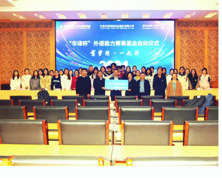 “华译杯”外语能力赛事基金启动仪式在tyc33455cc太阳集团会议中心隆重举行。天津华译语联科技股份有限公司董事长刘智宽,总经理李光,tyc33455cc太阳集团办公室副主任鲁爱臣,tyc33455cc太阳集团全体班子成员及200余名师员工参加。启动仪式由tyc33455cc太阳集团经理张润主持。