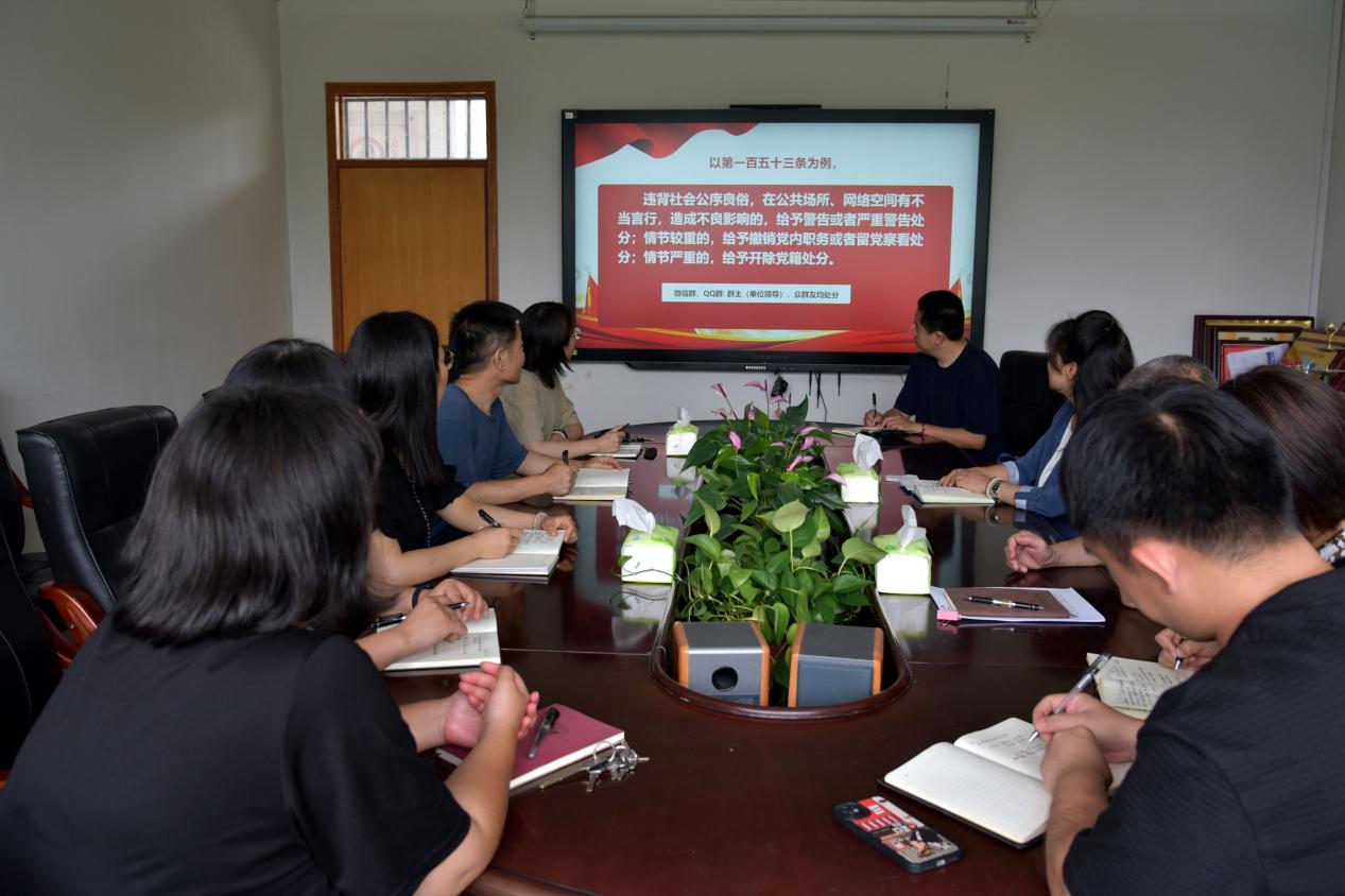 《中国共产党纪律处分条例》从党章这个总源头出发,坚持问题导向和目标导向相结合,与时俱进完善纪律规范,释放越往后执纪越严的强烈信号。它是各级党组织和全体党员必须恪守的行为准则,也是监督执纪问责的重要依据,要学有所得、学有所悟、学有所用。同志们都表示深刻理解加强纪律建设是全面从严治党的治本之策,要进一步增强维护党的纪律的自觉性、坚定性,更要紧密结合新时代全面从严治党伟大实践、党风廉政建设和反腐败斗争实践,带着思考、融会贯通学习《条例》,深刻理解把握《条例》主旨要义和实践要求,做到全面熟知掌握、准确规范使用。