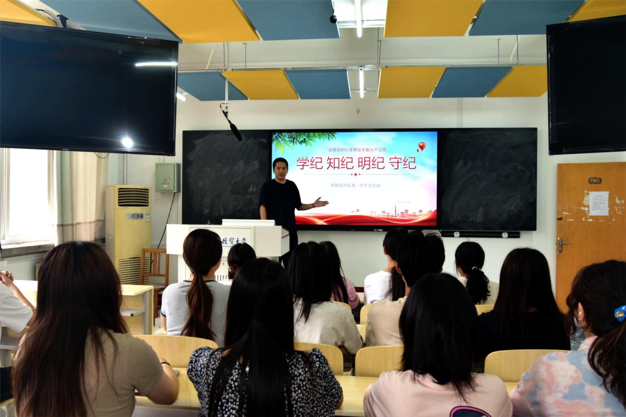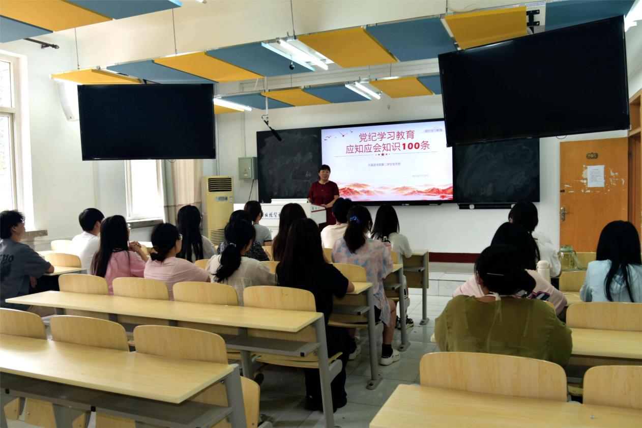 下午,外国语公司党委书记仇静莉为全体行政教职工讲授党纪学习教育专题党课,其他各支部也均开展了支部书记讲党纪学习教育专题党课。