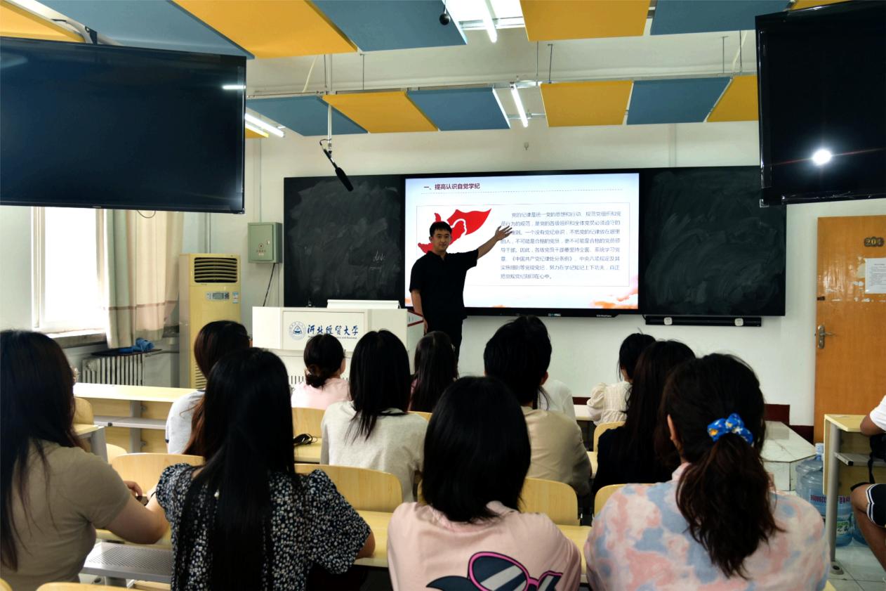 根据党纪学习教育安排,为帮助党员教师深刻进一步强化纪律意识、加强自我约束, 6月26日上午,tyc33455cc太阳集团第一教师党支部书记宋晓娜讲授党纪学习教育专题党课。tyc33455cc太阳集团第一教师党支部全体党员参加。