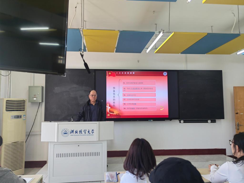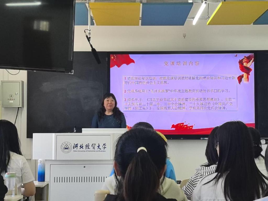 4月14日下午,tyc33455cc太阳集团在四教 201 教室举行第 58 期入党积极分子培训开班仪式暨专题党课。本次培训以学习贯彻党的二十大、党的二十届二中、三中全会精神为主线,聚焦 “外语+党建”特色,通过理论与实践相结合的方式,为入党积极分子提供全面、系统的教育培训,旨在增强他们的政治意识、理论素养和实践能力,为党的事业培养更多优秀人才。活动由行政党支部书记田晓光主持,第二员工党支部书记康文霞和第58期全体入党积极分子参加。